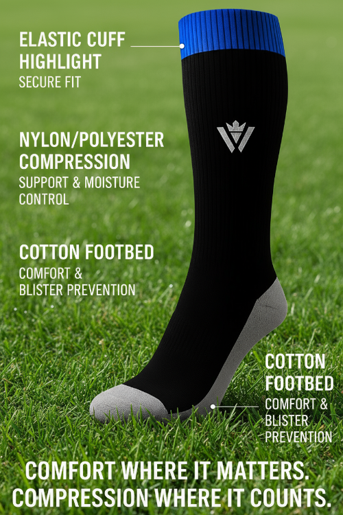 Waly’s creates high-performance soccer wear designed to help players move better, play faster, and stay comfortable in every training session and match. Our compression socks and athletic gear use breathable, moisture-wicking materials that support stability, reduce fatigue, and elevate on-field performance.